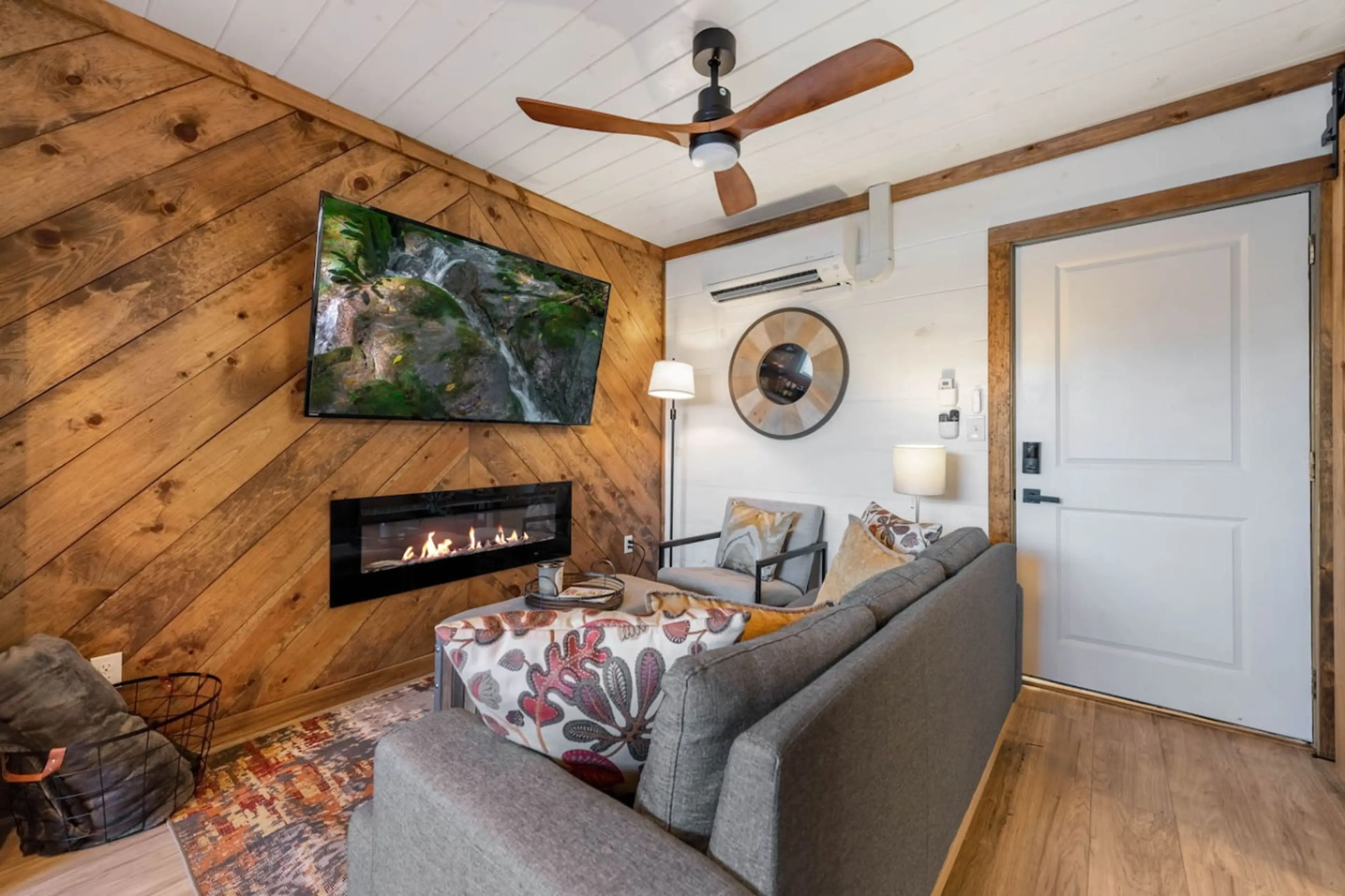 Prime downtown Blue Ridge suite located in The Penthouses on Main – walk to everything! Designed with "mountain modern" style, this 1BR, 1BA has been completely renovated. Open floor plan filled w/ character & charm incl. restored original exposed brick wall, rolling barn doors, open shelving in th...